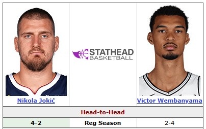掘金球星约基奇和马刺球星文班亚马此前共交手6次,约基奇4胜2负稍占上风。