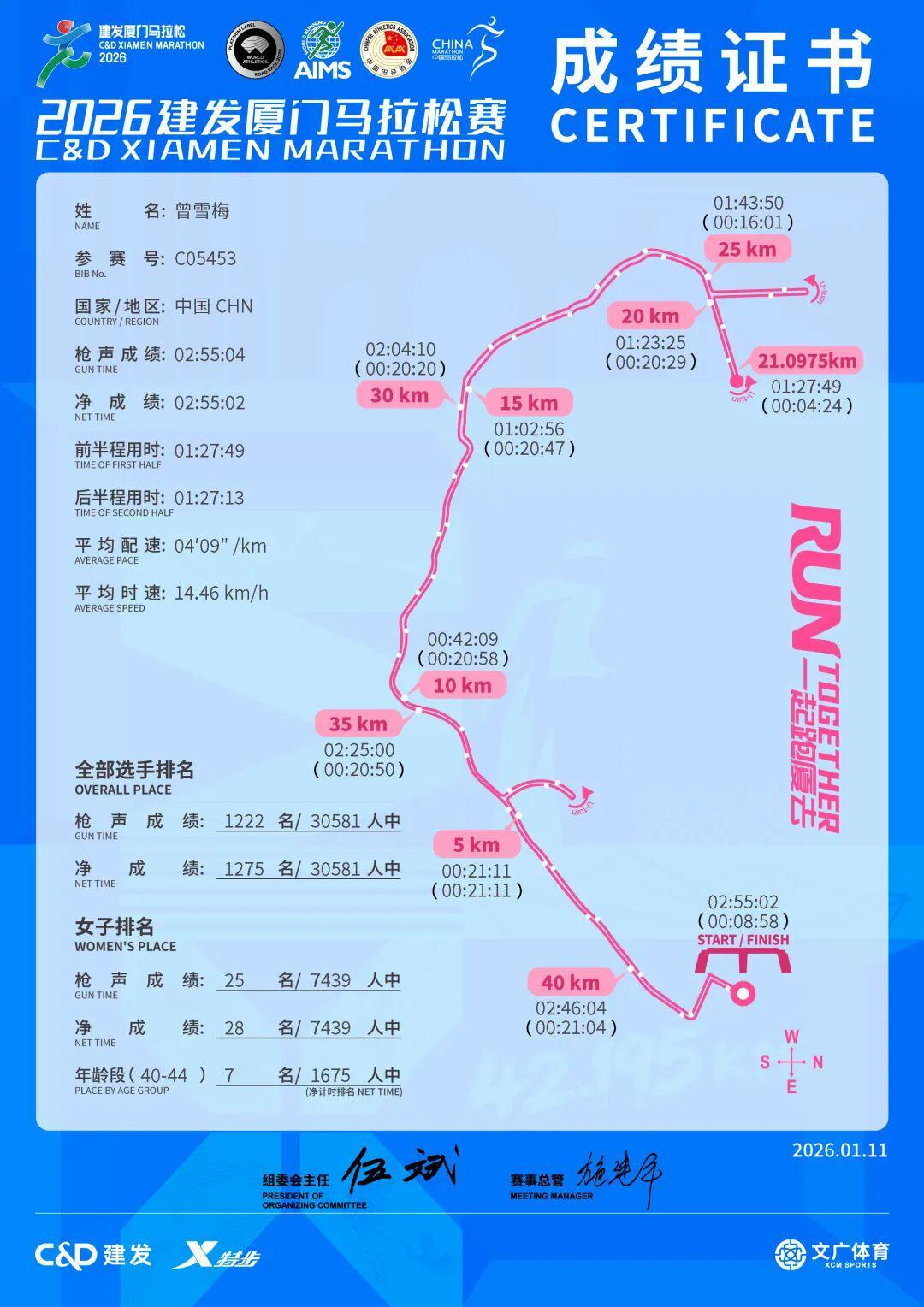 在跑完厦门马拉松的当晚,这条签名就改为了:“2026年的目标全马跑进245”