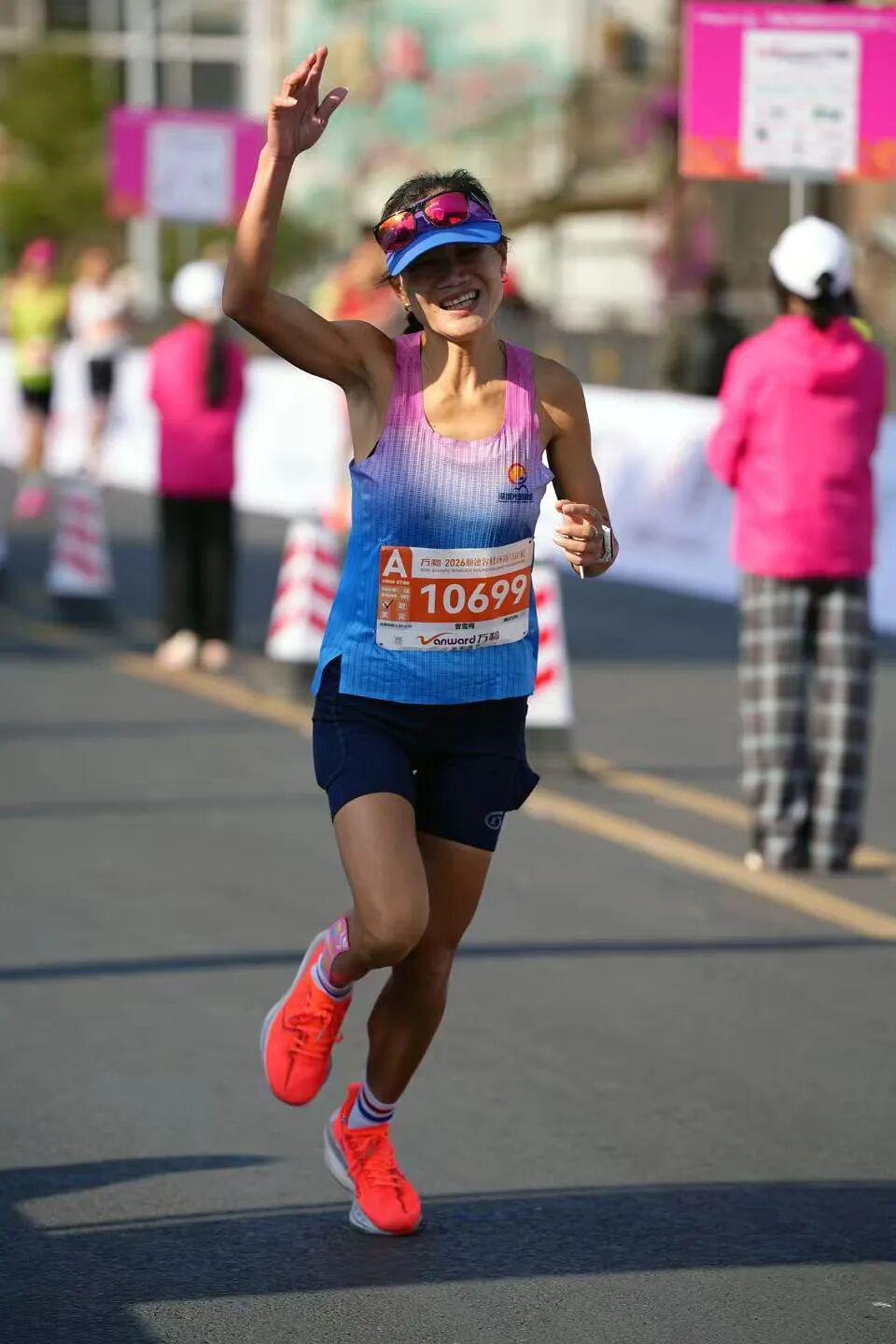她跑得太轻松了。第一次跑完半马,她连鞋子都是找跑友借的,跑完后也没觉得累;第一次跑完全马,看别人躺在地上拉伸、抽筋,她觉得自己腿不酸、气不喘,第二天照样能起床送儿子上学。